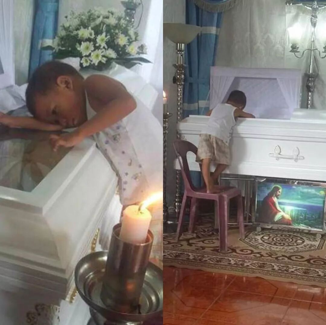 “妈妈,别睡了,快睁开眼睛看看我,我在这儿呢。”
