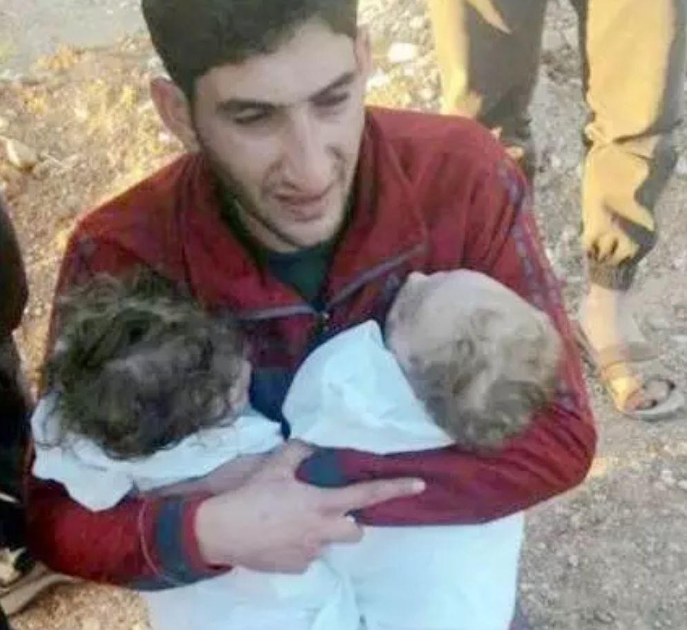 这位叙利亚父亲,在一疑似次毒气袭击中,失去了20位亲人。其中包括他美丽的妻子,还有可爱的龙凤胎。