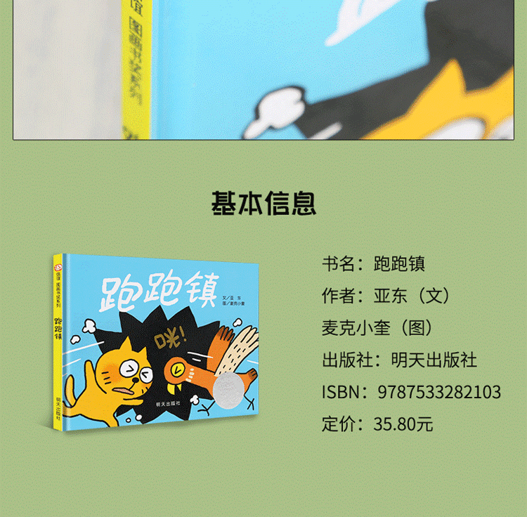 《 信谊图画书奖·跑跑镇》是一本创意游戏书,但是创意并不是天马行空的想象,而是通过两个不相关的东西快跑、碰撞在一起后,变成“新”事物;孩子可以从两个不同的对象上观察趣味的元素,进而联想出两个角色碰撞后可能产生的新变化。整本书充满了创意和趣味,跟着哒哒哒的脚步声,一起享受猜测的游戏乐趣吧!
