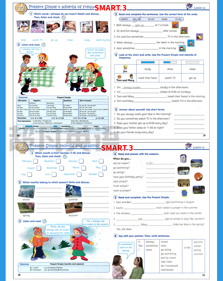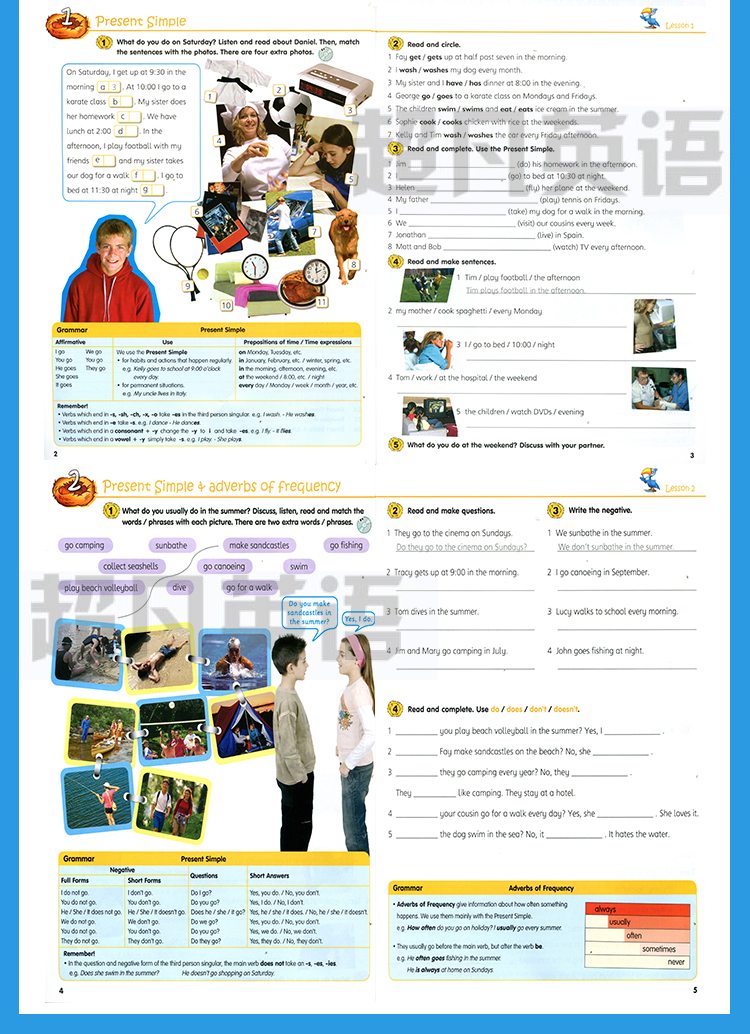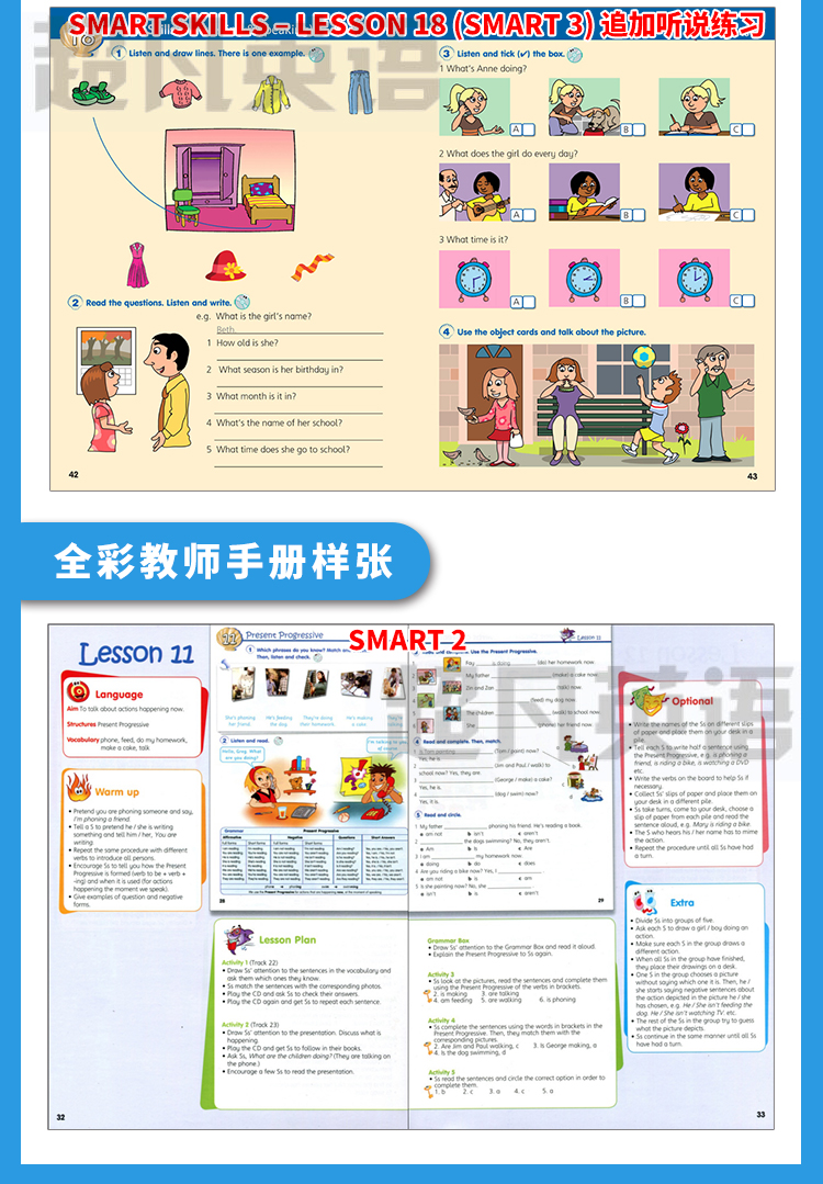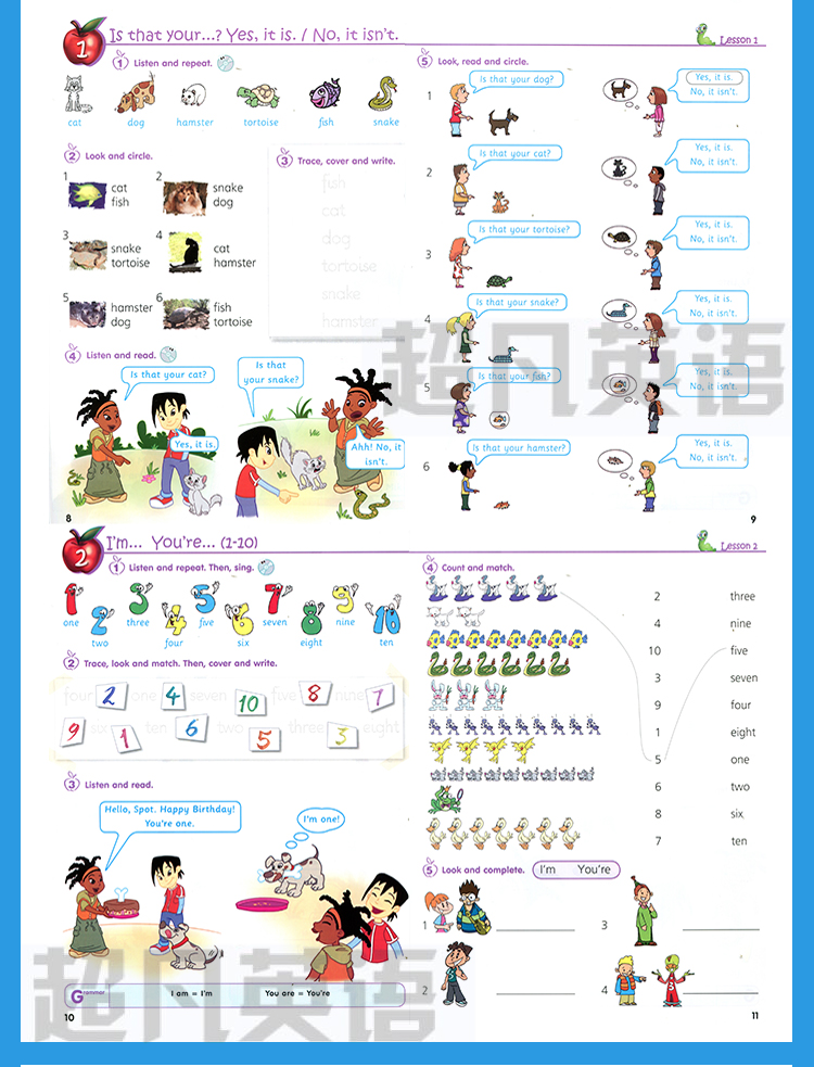 1. 每个语法知识点隐含着一个话题,这样便于孩子积累话题有关的词汇,也重复进行某一语法知识点的训练。