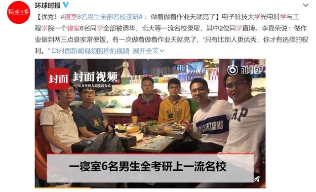 电子科技大学光电科学与工程学院一个寝室6名同学全部被清华、北大等一流名校录取,其中2位同学直博。
