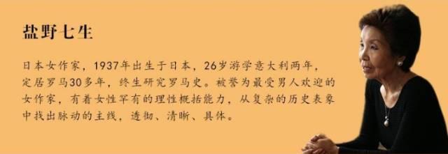 5、盐野七生,很受男人欢迎的女作家,有着女性罕有的理性概括能力,从复杂的历史表象中找出脉动的主线,透彻、清晰、具体。作者定居罗马30多年,有着不同于以往西方作家的东方视角。作者因此书获得意大利国家勋章,这套书在日本国内斩获多项大奖。