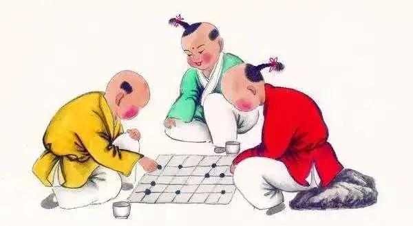 传说尧帝有一个儿子叫丹朱。丹朱小时候非常淘气,只知道和小伙伴用蛮力打打杀杀,身上弄出许多伤疤。而且丹朱头脑很笨,做事情不动脑子。尧怕他将来成不了才,于是就苦思冥想终于想出来一个教育儿子的好方法。一天,尧把丹朱叫到跟前对他说:“你喜欢打仗游戏,既容易受伤,也不团结。现在我教你一种不用拳和脚的打仗游戏。”尧让丹朱捡一些黑色和白色的小石子,又在地上画了很多交叉的横线和竖线,对丹朱说:“黑石子给你,白石子给我。一个石子就是一个兵,你我就是将军。咱们看谁的兵能把对方的兵围住,谁就赢了。”