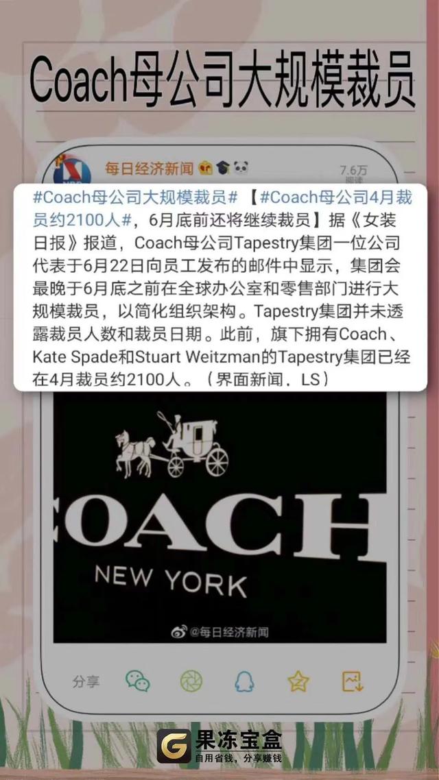 Coach母公司大规模裁员
