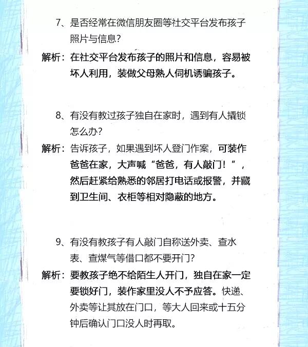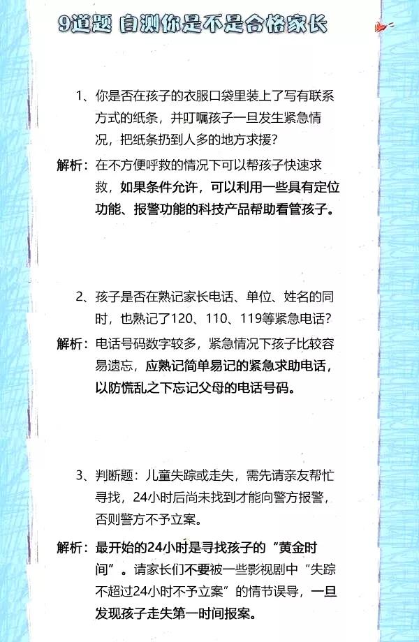 作为家长你给孩子讲过如何保护自己吗?先来看看下面这9道题,测测你是不是合格家长!