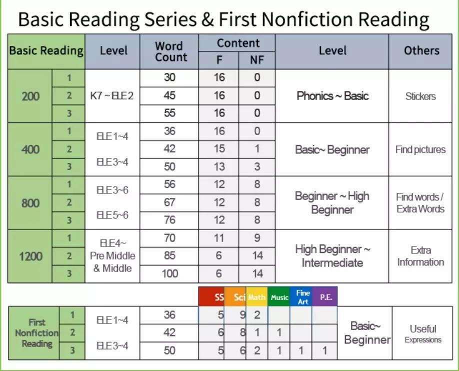 Basic Reading 系列以阅读常用字为基础,在单词基础上拓展出句型及简单的阅读。从易到难,累积阅读量。它是一套完整的教材,通过短句,故事,场景和上下文来学习词汇,从非常简单的词汇入手,逐步提高阅读理解的能力。