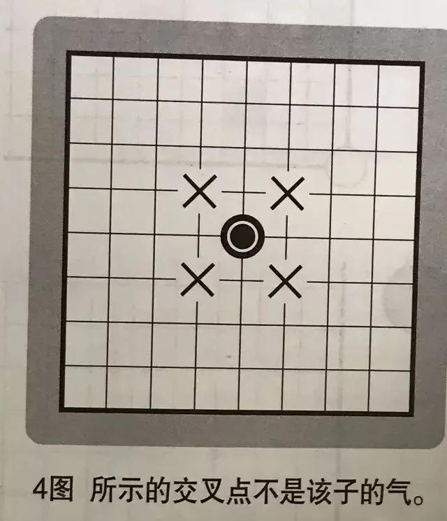若想学会如何吃子就必须先了解“气”,“气”是围棋基本术语之一,是指在棋盘上与棋子靠近并且有直线连接该棋子的交叉点。