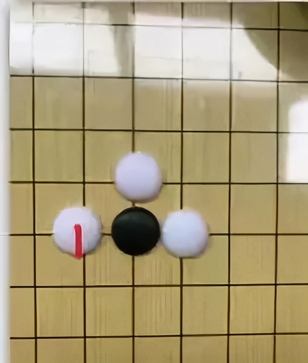 一方棋子围住一个交叉点,而另一方棋子进入这个点后只剩下一口气,这样的棋形叫“虎口”,简称“虎”。