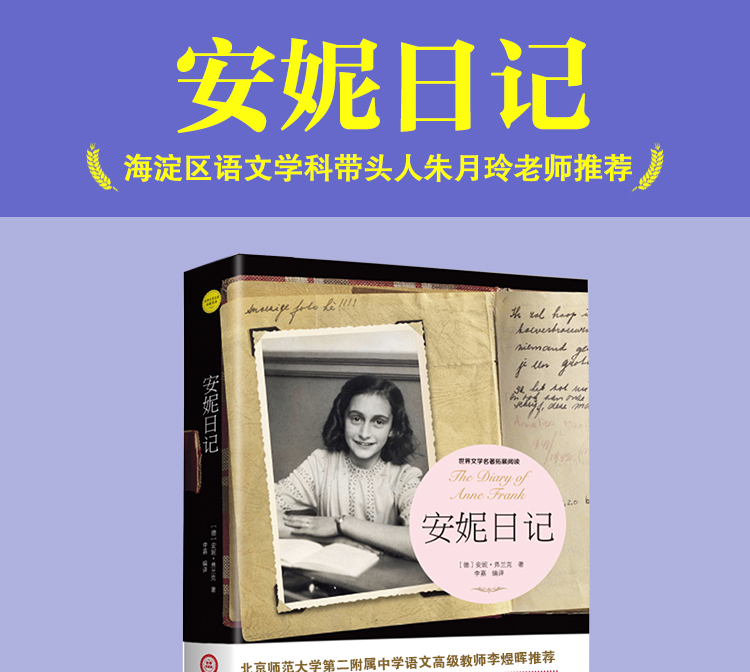 安妮·弗兰克(Anne Frank,1929—1945),德国犹太少女,二战期间“犹太人大屠杀”中引人注目的受害者之一。安妮青春洋溢,求知欲强,热爱写作。1942年为躲避纳粹迫害,不得不随家人藏匿于不见天日的密室中。此后的25个月,她用日记记录了令人窒息的密室生活和自己那颗被时代捆绑住的少女心。1944年8月因人告密而被抓捕关进集中营,在几个月后爆发的伤寒疫情中年轻的生命就此凋零。二战结束后,安妮的日记得以整理出版,控诉了战争阴云下犹太人艰辛而令人恐惧的生存状态。